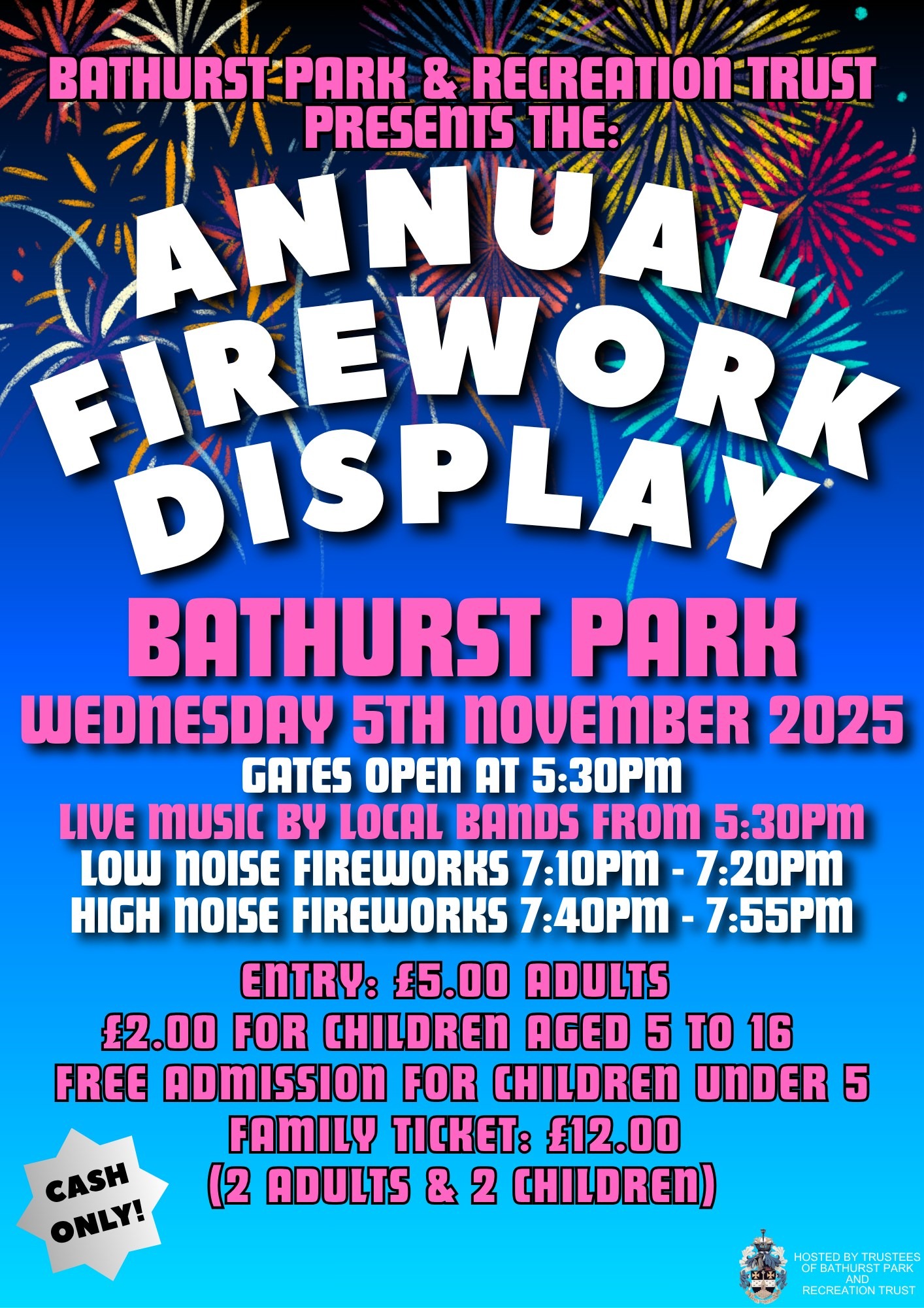 Come along and enjoy a spectacular evening for the whole family at Bathurst Park & Recreation Trust Annual Firework Display.